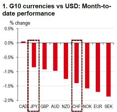 Within the traditional “safe haven” complex (Chart 1), the JPY has not yet benefited from heightened geopolitical risk. Meanwhile, the Swiss National Bank’s (SNB) increased readiness to intervene against CHF strength suggests a floor for G10–CHF pairs. SNB Governing Board member Antoine Martin reiterated this stance, stating that “our willingness to intervene, our readiness to intervene, is higher, given the recent political event” (Bloomberg, 4 March).