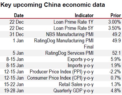 • China’s Central Economic Work Conference identified boosting domestic demand as a priority for next year.