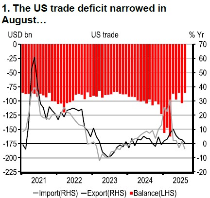 The US trade deficit narrowed in August