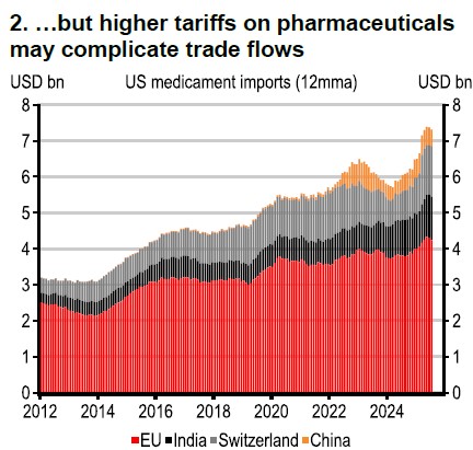 • New tariffs on pharma, lumber, furniture, and kitchen cabinets are set to weigh on eurozone exports.