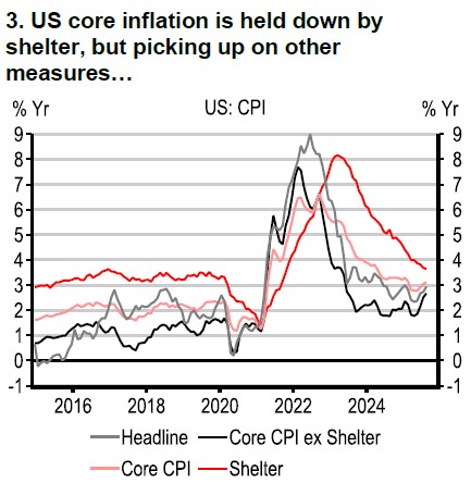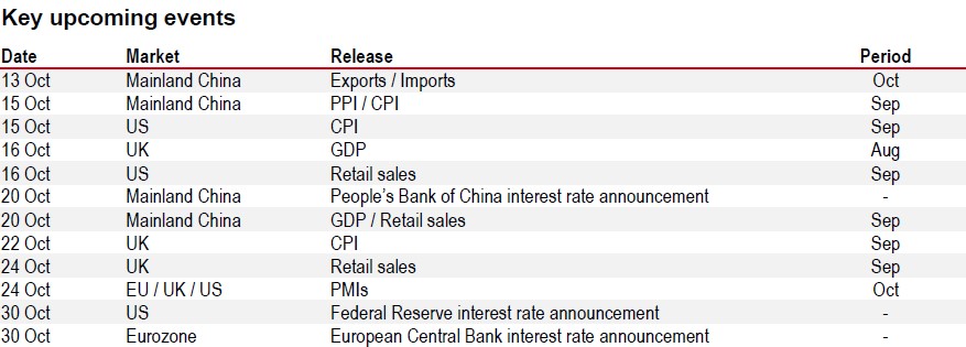 Due to the government shutdown in the US, we’re entering a bit of a data vacuum at a crucial time. The US labour market is showing clear signs of cooling, and private sector data and surveys will be given even more importance until we get the next sets of official payrolls and inflation data. The Federal Reserve has already delivered a 25bp rate cut at its September meeting and we expect an additional two 25bp rate cuts this year.