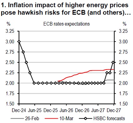 The conflict started at a time when the recent hard data had been quite solid. Global manufacturing and services PMIs (and particularly the US services ISM) increased in February even as the US labour market data continues to paint a mixed picture. January’s upside surprise in payrolls (+126k) was followed by a large drop in February (-92k) but jobless claims are low. Globally, inflation was little changed, although core inflation was up to 2.4% in the Eurozone in February and US core Personal Consumption Expenditures (PCE) was 3% in December.