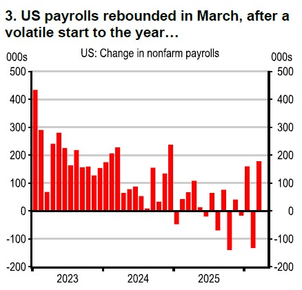 Central banks will be watching the data in the coming weeks for any signs that the energy supply shock is rippling into other parts of the global economy. Our base case is for most central banks to sit tight for now, but whilst many could be pushed into tightening, any notable rise in US unemployment could be a trigger for rate cuts. The March labour market data in the US saw a big rise in nonfarm payrolls, with the unemployment rate falling slightly, but there remain plenty of risks to the labour market outlook.