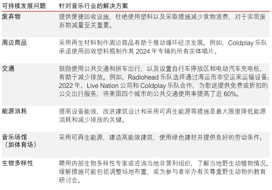 对于上市音乐公司,投资者应审慎评估其排放目标和转型计划的可信度。我们认为,音乐可以成为推动文化和社会变革的催化剂,而现场音乐行业在提升自身可持续发展实践方面仍大有可为。