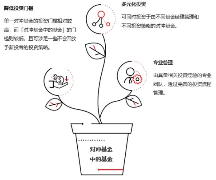 「对冲基金中的基金」致力透过策略性配置及专业管理,投资于一篮子的对冲基金,使投资者可受惠于基金经理的专才、多元化的策略及专业的风险管理,以达成资本增值的长远目标。
