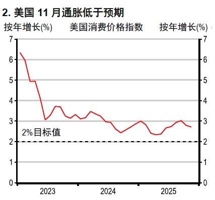 随着移民人数增长放缓和生产率提高,12 月失业率小幅回落至4.4%。此外,美国通胀虽已回落,但技术性因素在其中产生了一定影响,且全球投入品价格,特别是存储芯片价格,正呈现明显上涨趋势。此外,政府重新运作带来的效应以及减税措施,预计将在2026 年上半年支持美国经济增长。